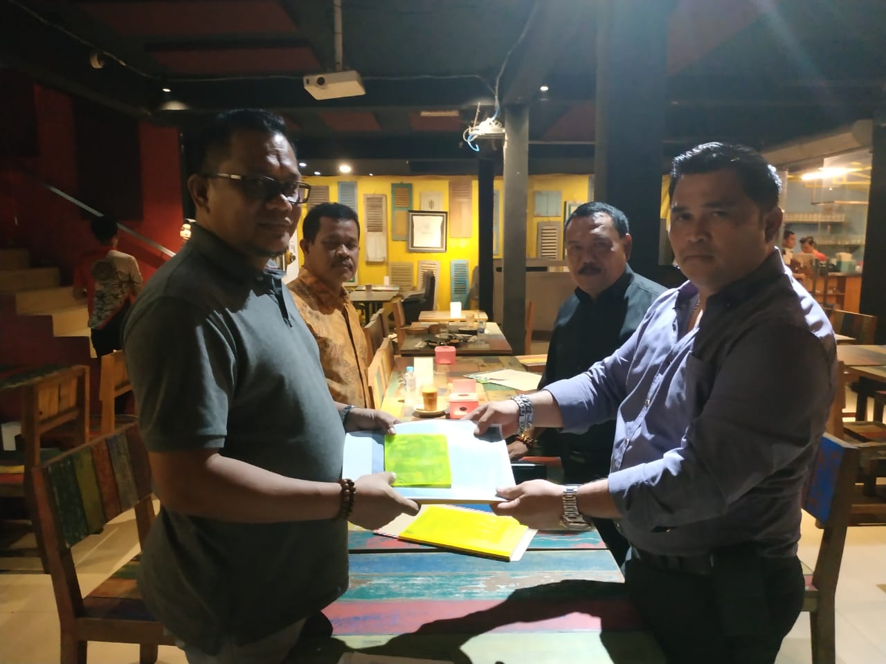 bersama Johansyan (Sekretaris Forki Kalsel) dan Marudut Tampubolon (Penasehat Forki Kalsel), menyerahkan berkas hasil Musprov IX yang dterima langsung Basiruddin (kiri) selaku anggota tim kerja PB Forki, Kamis (28/2) malam di Jakarta. (foto: ist/brt)