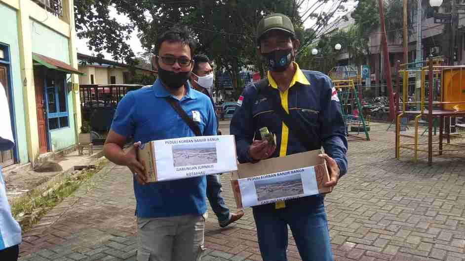 Menurut salah satu koordinator jurnalis perduli Masduki mengatakan, kegiatan penggalangan dana untuk para korban banjir tidak lain adalah untuk membantu dan meringankan beben saudara-saudara kita di sana.