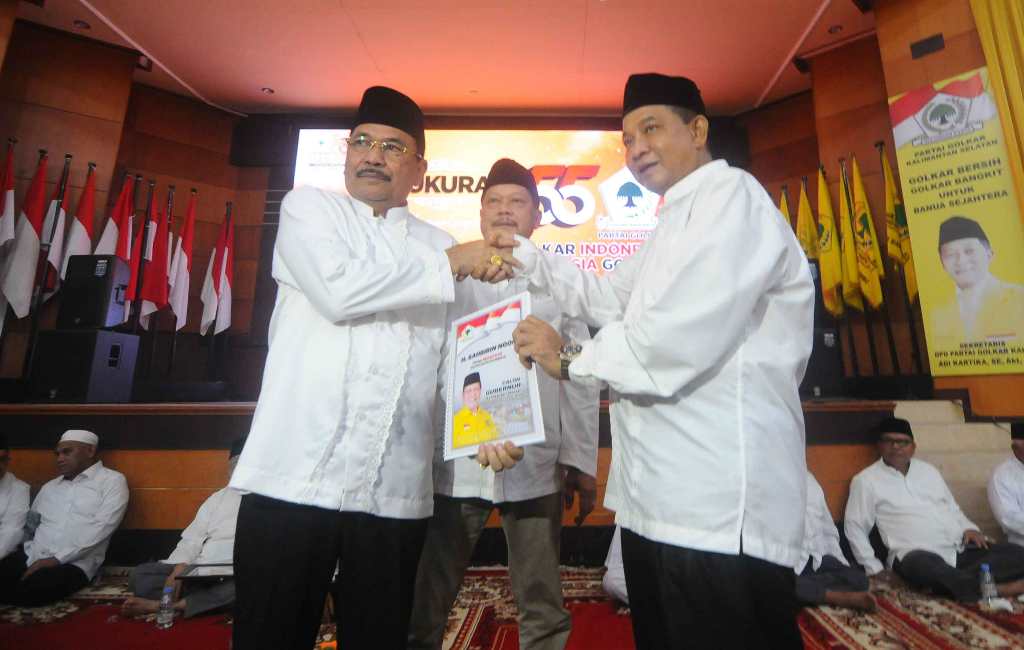 Dikesempatan itu pula H Sahbirin Noor melalui sambutan tertulisnya dibacakan Gusti Iskandar memohon izin kembali mencalonkan diri sebagai calon gubernur, sekaligus menyerahkan berkas pencalonan melalui Partai Golkar.