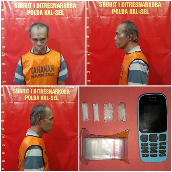 Tamatan SMP yang bekerja sebagai buruh ini tak mengira jika penerima 4 paket sabu berat 2,24 gram yang diserahkannya adalah polisi yang menyamar . Tak ayal warga Jalan Sutoyo.S RT/RW 10/01!Kelurahan Teluk Dalam Kecamatan Banjarmasin Tengah Kota Banjarmasin Provinsi Kalsel ini pun tak bisa berkutik lagi dengan barang bukti yang disita polisi dari tangannya .