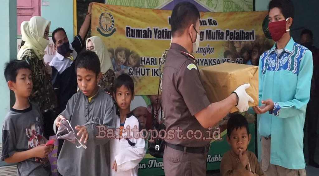 Pelaihari,BARITO-Menjelang Hari Bakti Adhyaksa yang ke 60 yang akan jatuh pada tanggal 22 Juli 2020 mendatang, jajaran Korps Adhyaksa Kabupaten Tanah Laut melakukan Bakti Sosial (Baksos) berupa pembagian bahan kebutuhan sehari-hari kepada Panti Asuhan Tuntung Pandang di Desa Atu-Atu Kecamatan Pelaihari dan Asrama Yatim Piatu dan Dhuafa yang berada didepan Ruang Terbuka Hijau (RTH) Kijang Mas Permai Pelaihari serta Rumah Tahanan (Rutan) Pelaihari Rabu, (15/7).
