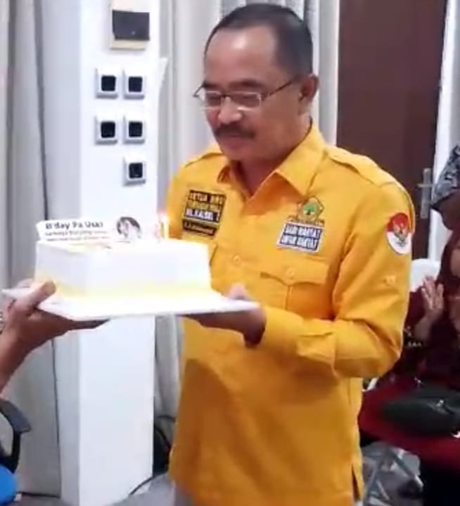 Uski panggilan akrabnya yang pada Senin (17/7), diundang untuk menghadiri rapat koordinasi partai berlambang pohon beringin di kantor DPD Kota Banjarmasi tersebut, kelihatan tak menyangka akan kejutan yang diberikan di ultahnya ke 59.