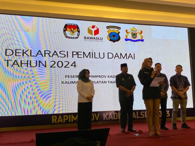Deklarasi pemilu damai digelar pada kegiatan rapat pimpinan provinsi (Rapimprov) Kadin Kalsel yang digelar di Rattan Inn Banjarmasin.