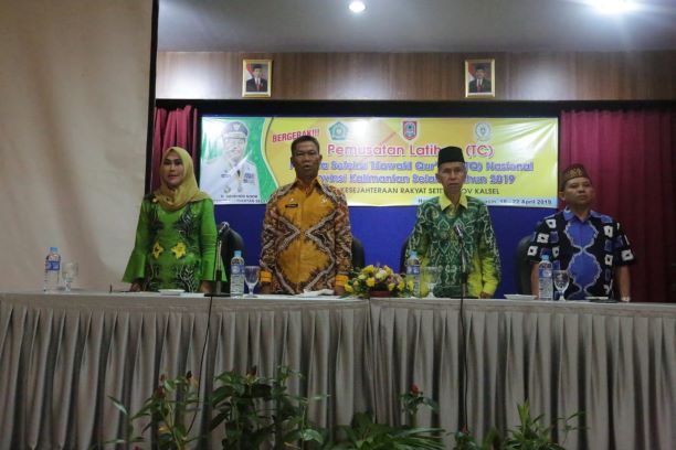 PELATIHAN-Asisten III Setadprov Kalsel, Heriansyah dan Kepala Biro Kesra SetdaprovKalsel, Ina Yuliani foto saat pembukaa. pemusatan pelatihan atau training center (TC) Seleksi Tilawatil Qur’an (STQ) asal Kalimantan Selatan yang akan mengikuti STQ XXV Tingkat Nasional di Kalbar. (foto ist/brt)