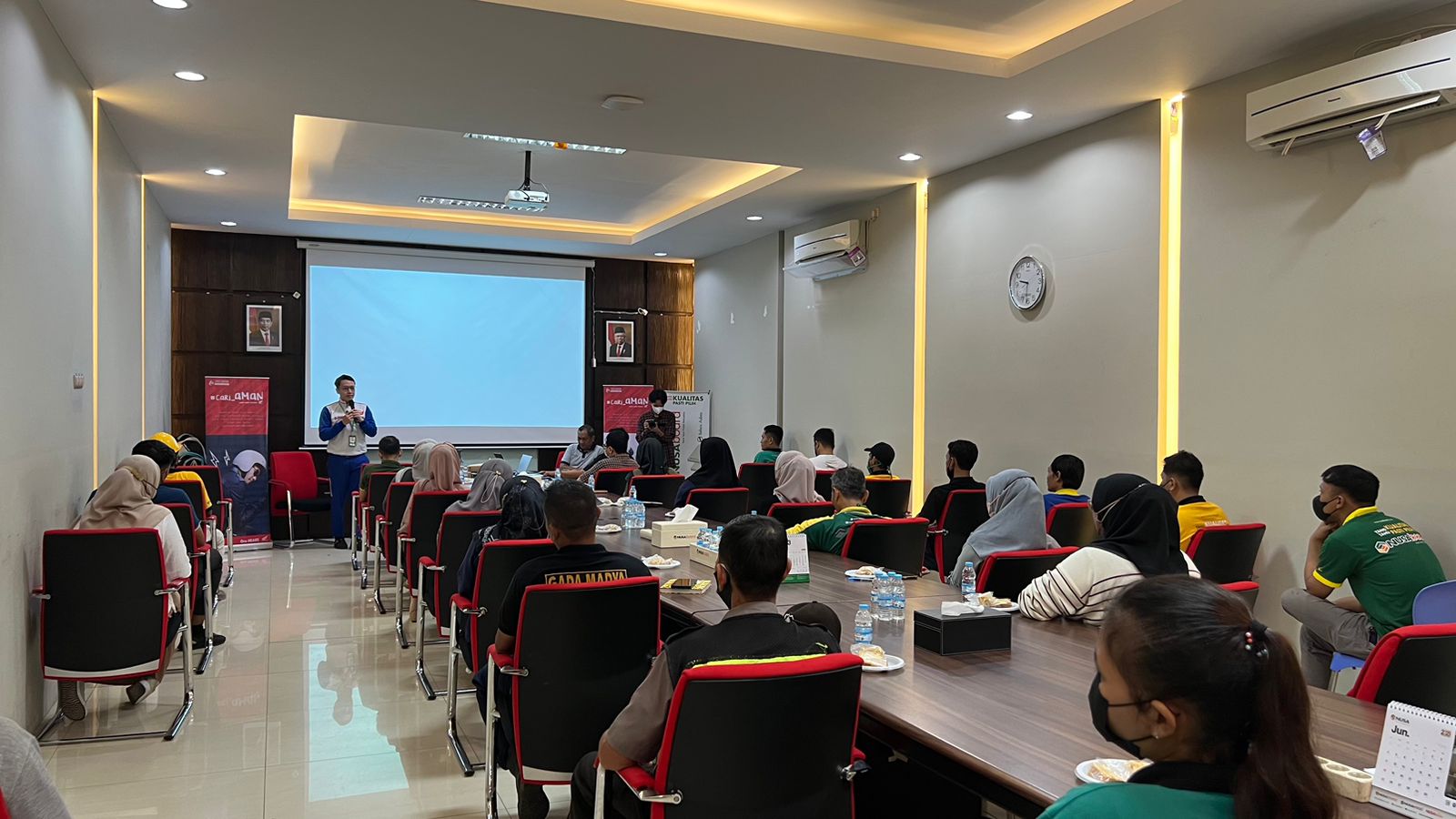 Tim Safety Riding Trio Motor yang berkunjung memberikan materi kepada karyawan untuk Edukasi #Cari_Aman.