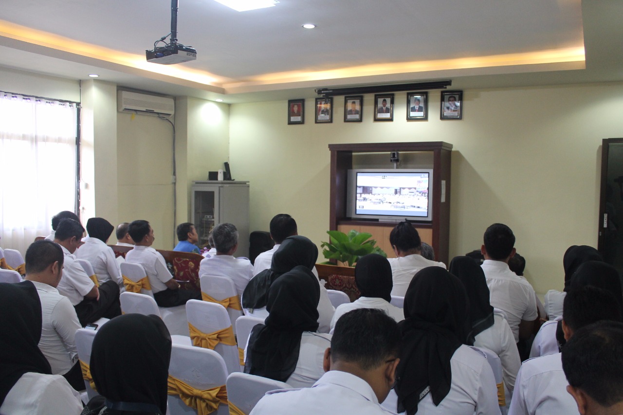 Para pimpinan Kanwil Kemenkumham Kalsel melakukan teleconference tersebut di Ruang Rapat Kepala Kantor Wilayah (Kakanwil). Dalam hal ini, acara yang diselenggarakan Kemenkumham RI itu memang disiarkan langsung di seluruh Indonesia.