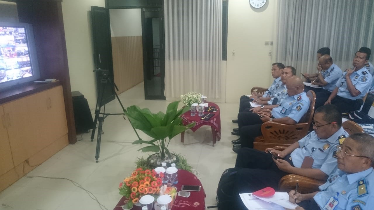 Jajaran Kanwil Kemenkumham Kalsel mengikuti teleconference dengan Kemenkumham RI di ruang kakanwil, Selasa (22/1) pagi. (Foto:ist/brt).