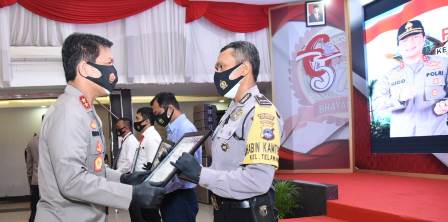 Penghargaan tersebut pun langsung diserahkan Kapolda Kalsel Irjen Pol. Dr. Nico Afinta, S.I.K., S.H., M.H. didepan Wakapolda Kalsel Brigjen Pol. Mohamad Agung Budijono, S.I.K., M.Si., Irwasda Polda Kalsel Kombes Pol. Dr. Heri Armanto Sutikno, S.H., M.Si, para Pejabat Utama Polda Kalsel, dan Kapolresta Banjarmasin di Aula Bhayangkari Mathilda Batlayeri Mapolda Kalsel, Jumat (25/9/2020) pukul 08.00 Wita.