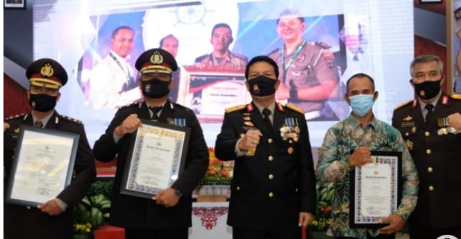 Banjarmasin, BARITO – PADA peringatan Hari Bhayangkara ke-74 tahun 2020, Kapolda Kalimantan Selatan Irjen Pol Nico Afinta memberikan penghargaan kepada anggota berprestasi termasuk masyarakat yang berjasa ikut andil membantu kesuksesan institusi Polri di Kalsel itu