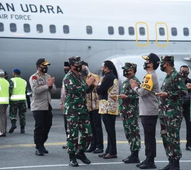 Sebelumnya, Gubernur Kalsel H Sahbirin menyambut kedatangan Panglima TNI Marsekal Hadi Tjahjanto dan Irwasum Polri Komjen Pol Drs. Agung Budi Maryoto, M.Si—mantan Kapolda Kalsel.