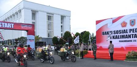 Menyerahkan secara simbolis bantuan 750 Paket Sembako dan 2 ribu kilogram beras hasil sumbangan Pemprov Kalsel, Polda Kalsel Noor yang akan dibagikan Babinsa, Bhabinkamtibmas, Tagana Kalsel, serta Ormas se-Kalsel, Kamis (23/7/2020).