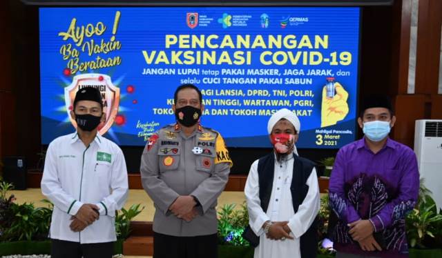 Polda Kalsel, Banjarmasin – Kapolda Kalsel Irjen Pol Drs. Rikwanto, S.H., M.Hum. menghadiri acara Pencanangan Vaksinasi Covid-19 bagi Lansia, Tokoh Agama, Tokoh Masyarakat, TNI – Polri, Anggota DPRD, Kejaksaan Tinggi dan Wartawan, Rabu (3/3/2021) pukul 08.00 Wita.