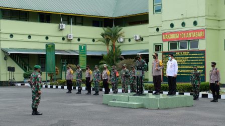 Bertempat di Lapangan Apel Korem 101/Antasari dilaksanakan Apel Bersama Tim Mobile TNI-Polri dan Pemprov Kalsel dalam rangka Penegakan Protokol Kesehatan Covid 19, Rabu (23/9/2020) pukul 09.00 Wita.