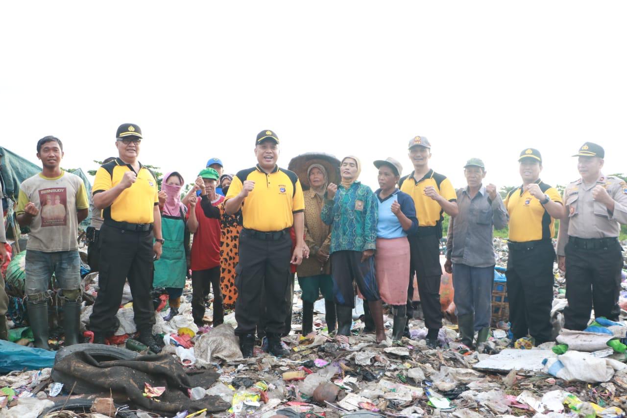 KAPOLDA Kalsel Irjen Pol Yazid Fanani bersama Wakapolda Brigjen (Pol) Aneka Pristafuddin usai upacara foto bersama petugas kebersihan dan pemulung di TPA Basirih ( foto ist)