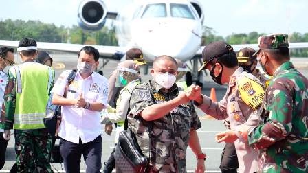 Turut hadir juga dalam penjemputan tersebut Ketua DPRD Kalsel, Kajati Kalsel, Kepala Kanwil Kemenkumham, Danrem 101/Antasari, Danlanal Banjarmasin, serta Danlanud Syamsudin Noor.