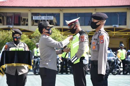 Kapolda Kalsel Irjen Pol. Dr. Nico Afinta, S.I.K., S.H., M.H. melepas langsung Tim Mobile Penegak Disiplin Kesehatan Polda Kalsel, Senin (21/9/2020) pukul 09.00 Wita di Lapangan Polda Kalsel. Sebelum melepas Tim Penegak Disiplin Kesehatan (PEDAS), lebih dulu dilakukan pemasangan Rompi secara simbolis oleh Kapolda Kalsel dalam Apel Kesiapan dan Pengecekan yang dihadiri Wakapolda Kalsel Brigjen Pol. Mohamad Agung Budijono, S.I.K., M.Si., Irwasda Polda Kalsel Kombes Pol. Dr. Heri Armanto Sutikno, S.H., M.Si., Pejabat Utama Polda Kalsel, Kapolresta Banjarmasin, Kapolres Banjarbaru, Kapolres Banjar dan Kapolres Batola.