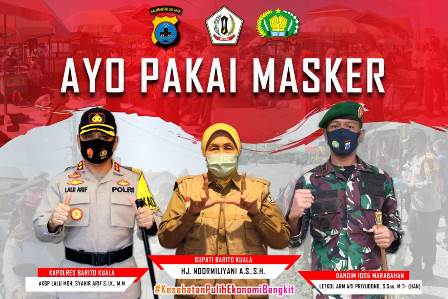 Ia mengajak kepada seluruh masyarakat di Barito Kuala untuk tidak lupa menggunakan masker saat berpergian keluar rumah.