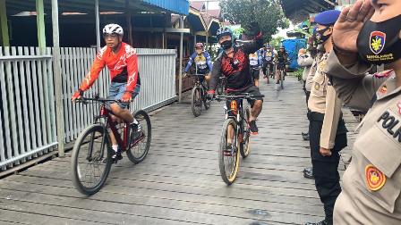 Dengan Goes bareng yang dilalui di daerah hukum Batola, Kapolres Batola AKBP Lalu Moh Syahir Arif, S.I.K., SH., MM, bersama Kapolda Kalsel Irjen Pol Dr Nico Afinta, S.I.K., SH., M.H menggelar kegiatan gowes bareng bersama Jajaran aparat Polda Kalsel yang dilalui dari daerah Kayu Tangi, Kec Anjir Muara dan Kec Tamban menuju Pelabuhan Verry di Desa Jelapat Kec Tamban Kab Batola, Sabtu (01/8/2020),