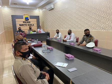 Kegiatan Vicon yang di hadiri oleh Kapolres Batola AKBP Lalu Moh Syahir Arif, S.I.K., S.H.,M.M, Ketua Komisioner KPU Kabupaten Batola, Ketua Komisioner Bawaslu Kabupaten Batola, PJU Polres Batola, Perwira Polres Batola.