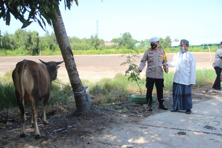 Kapolres Batola AKBP Lalu Moh Syahir Arif, S.I.K., SH., MM mengatakan, kegiatan tersebut menindaklanjuti program Kapolda Kalsel Irjen Pol Dr Nico Afinta, S.I.K., S.H., M.H, dengan penyerahan hewan sapi kurban.