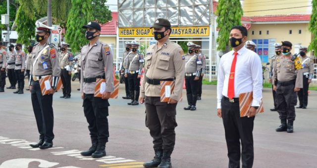 Polda Kalsel, Polres HSU – Pelaksanaan upacara pemberian reward and punishment dipimpin langsung oleh Kapolres HSU AKBP Afri Darmawan, S.I.K,.M.H di halaman Mapolres HSU, Kamis (17/12/2020).