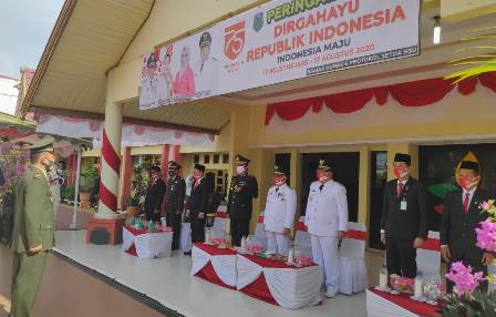 Peserta Upacara Detik Detik Proklamasi Kemerdekaan Republik Indonesia ke-75 di Halaman kantor Pemda HSU, sementara pasukan upacara diantaranya Personel Kodim 1001/Amuntai, Polres HSU, Sat Pol PP Kab. HSU. Dishub Kab. HSU dan Personil Korpri Kab. HSU.