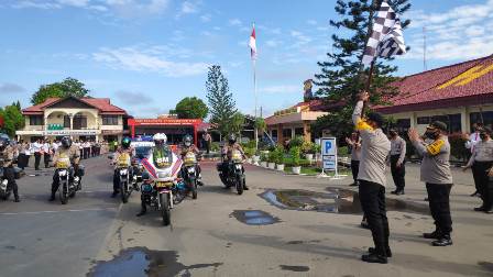 Usai pimpim apel pagi dan apel persiapan pelepasan Tim penggerak prokes, Kapolres HSU AKBP Afri Darmawan, S.IK,.M.H melepas Tim Show Off Force (Konvoi) di halaman Mapolres HSU, yang dihadiri Wakapolres HSU Kompol Irwan, para Pju Polres HSU, para Kapolsek dan Personil serta ASN Polres HSU.