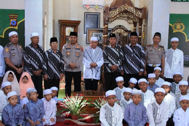 Kapolresta Banjarmasin Kombes Pol Sumarto saat bersama foto bersama purnawirawan dan Hafiz Anshari serta anak-anak Panti Asuhan Yayasan Panti Asuhan Putra Asri Kecamatan Gambut Kabupaten Banjar, usai Peringatan Maulid Nabi Besar Muhammad SAW 1441 H / 2019 M, Selasa (12/11/2019) pagi. (foto:ist)