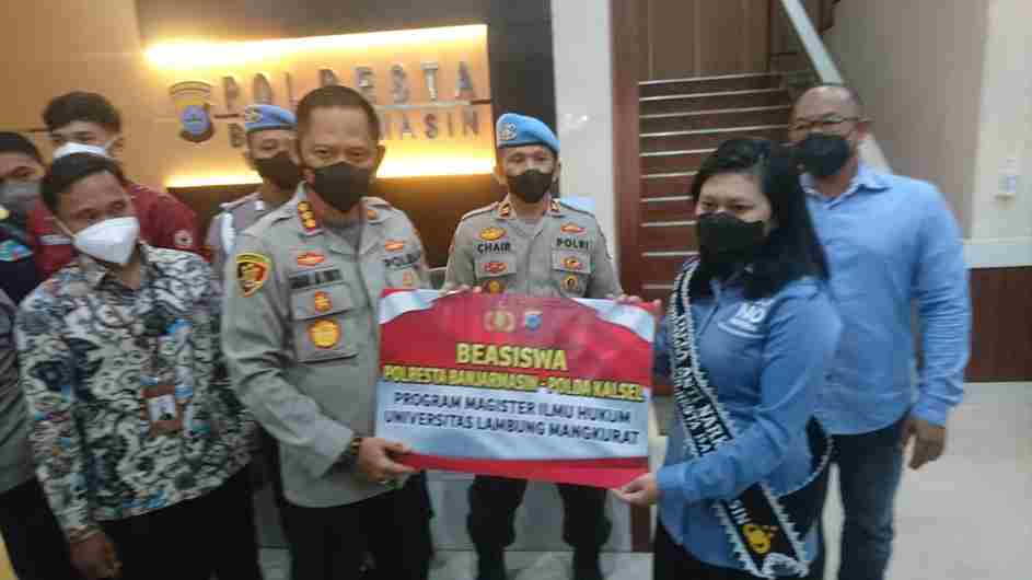 Banjarmasin, BARITO – Tak hanya cukup minta maaf dan memecat oknum Satnarkoba Polresta Banjarmasin bernama Bayu Tamtomo, Kapolresta Kombes Pol Sabana Atmojo Martosumito juga memberikan bea siswa S2 kepada Devi, Rabu (9/2/20022) sore. Devita yang didampingi pengacaranya dari Borneo Law Firm Banjarmasin