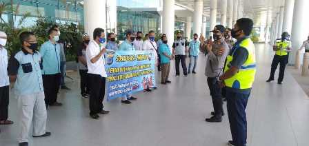 Kapolsek AKP Andri Hutagalung Pimpin Operasi Yustisi dan Sosialisasi Prokes Diareal Bandara Internasional Syamsudin Noor