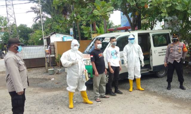 Pasien Konfirmasi Positif Covid-19 di Kec. Alalak Kab. Barito Kuala, menggunakan R. 4 Ambulance, Puskesmas, APD.