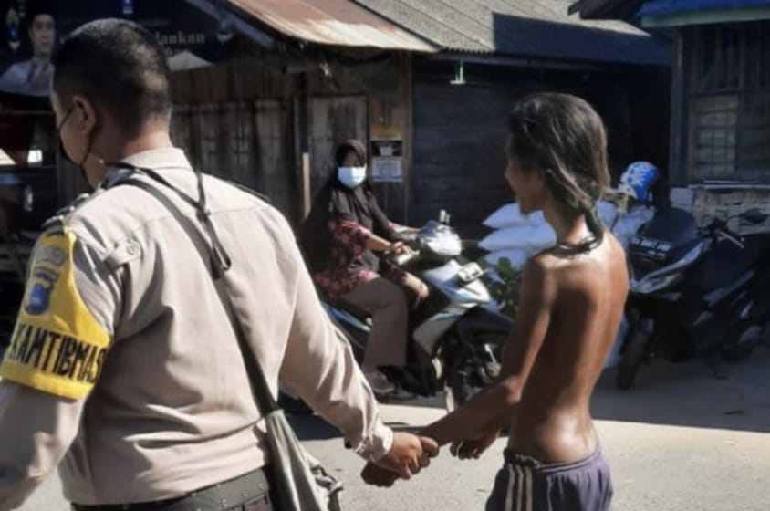 Banjarmasin, BARITO – Seorang pemuda dalam keadaan tanpa menggunakan baju dan sandal berhasil diamankan