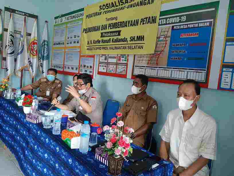 Hal itu diungkapkan Politisi Golkar ini saat melaksanakan kegiatan Sosialisasi/Penyebarluasan Peraturan Perundang-undangan Nomor 19 Tahun 2013 tentang Perlindungan dan Pemberdayaan Petani di Desa Puntik Dalam Kecamatan Mandastana Kabupaten Barito Kuala, Selasa (7/9/2021).