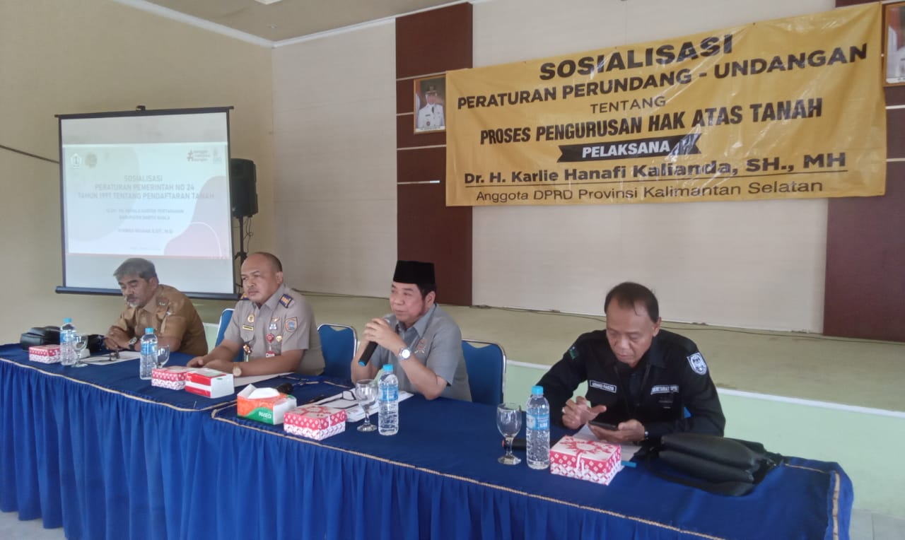 Belawang, BARITOPOST.CO.ID – Anggota DPRD Provinsi Kalimantan Selatan (Kalsel), Dr H Karlie Hanafi Kalianda, SH, MH mengingatkan kepada masyarakat bahwa pendaftaran tanah memiliki arti penting, yaitu untuk menjamin kepastian hukum dan perlindungan hukum, sehingga menimbulkan rasa aman atas tanah yang dimiliki.