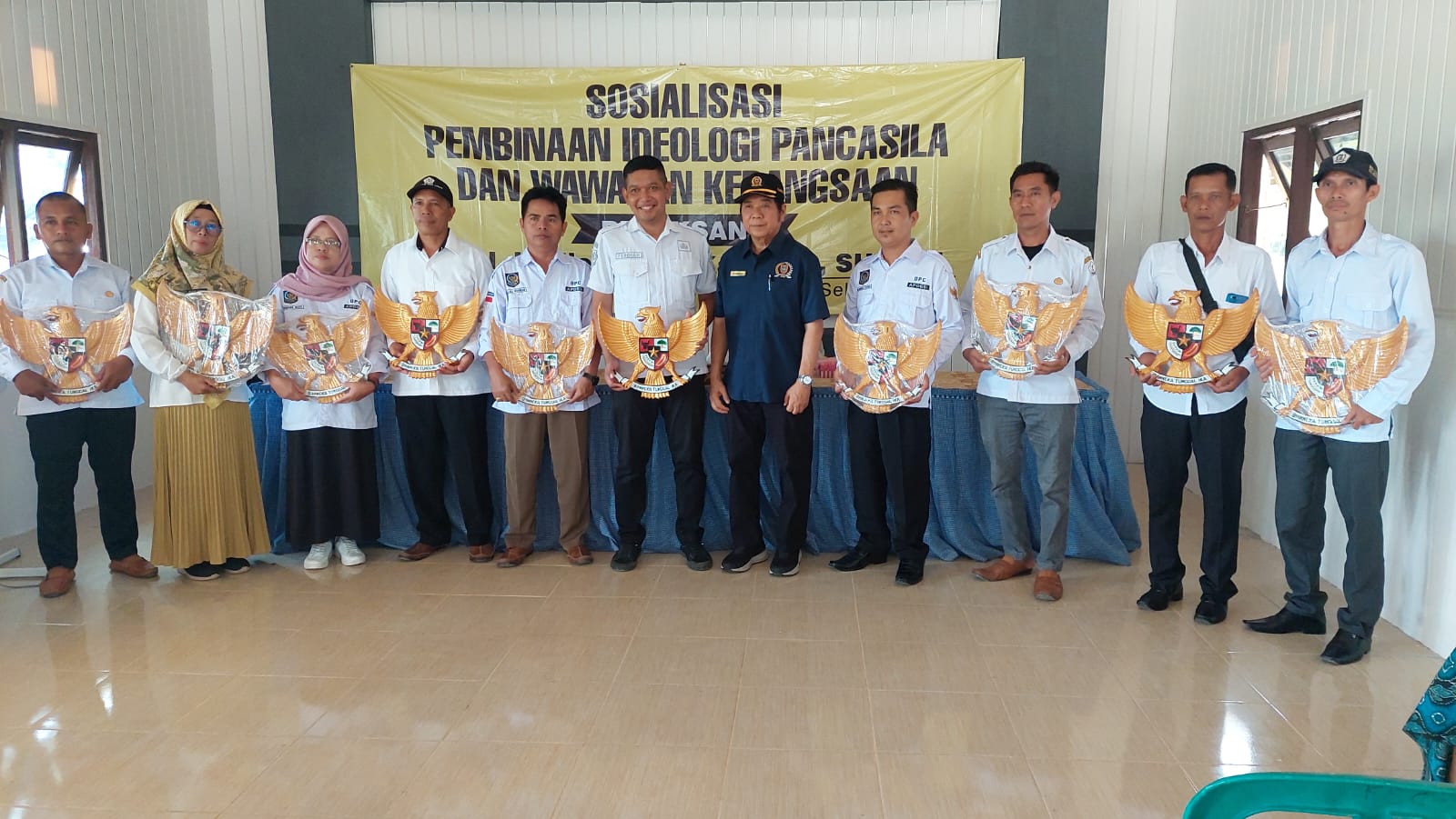 Kegiatan Sosialisasi Pembinaan Ideologi Pancasila dan Wawasan Kebangsaan dihadiri Plt Camat Mekarsari, Yan Ferdinan, para Kepala Desa se-Kecamatan Mekarsari, tokoh masyarakat dan tokoh agama serta puluhan warga masyarakat lainnya.