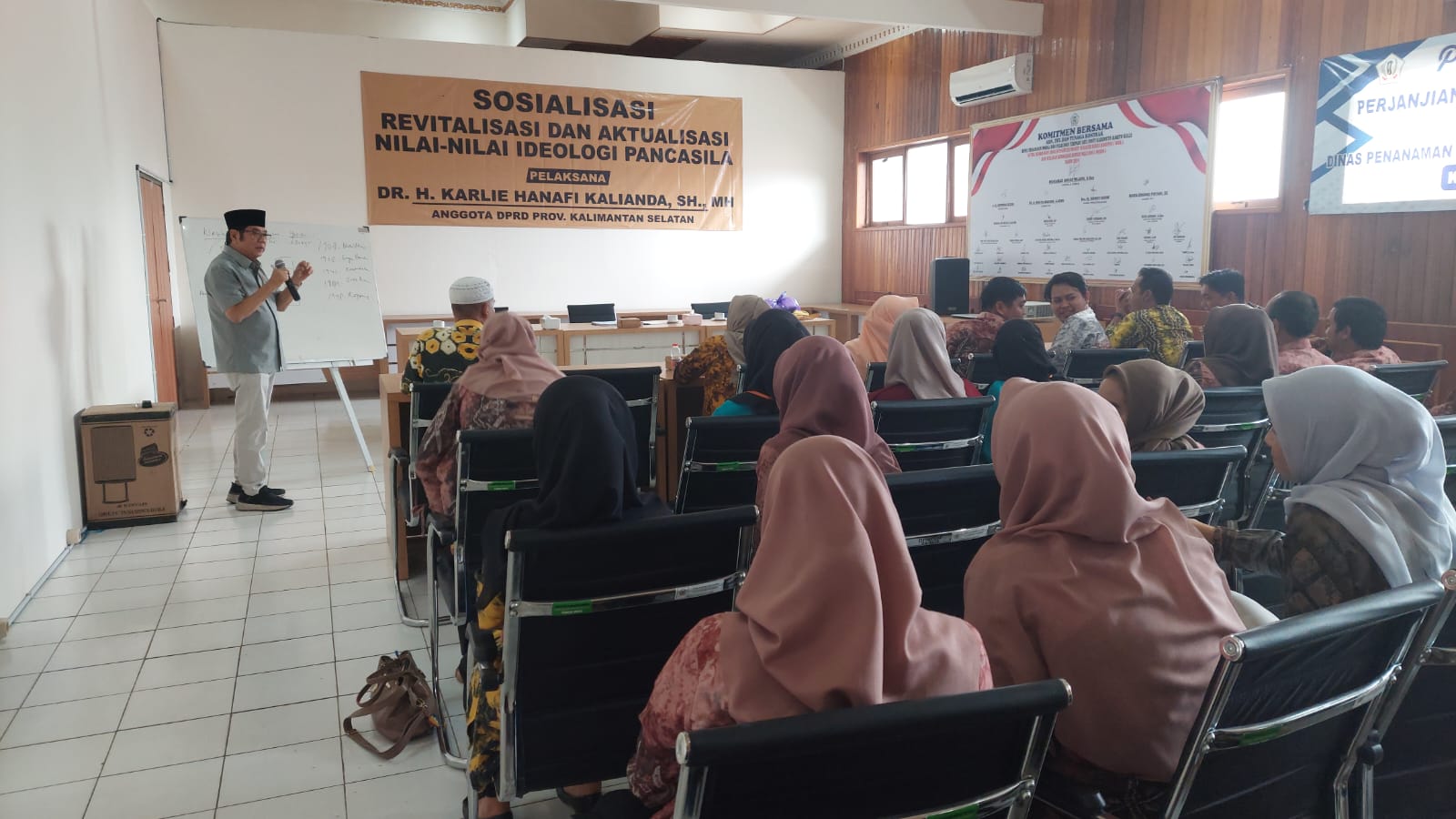 Kegiatan Sosialisasi Revitalisasi dan Aktualisasi Nilai-nilai Ideologi Pancasila yang dilaksanakan anggota Komisi II DPRD Provinsi Kalsel, Dr H Karlie Hanafi Kalianda, SH, MH diikuti dengan penuh perhatian oleh para peserta yang menyimak dengan sangat serius materi demi materi yang disampaikan.