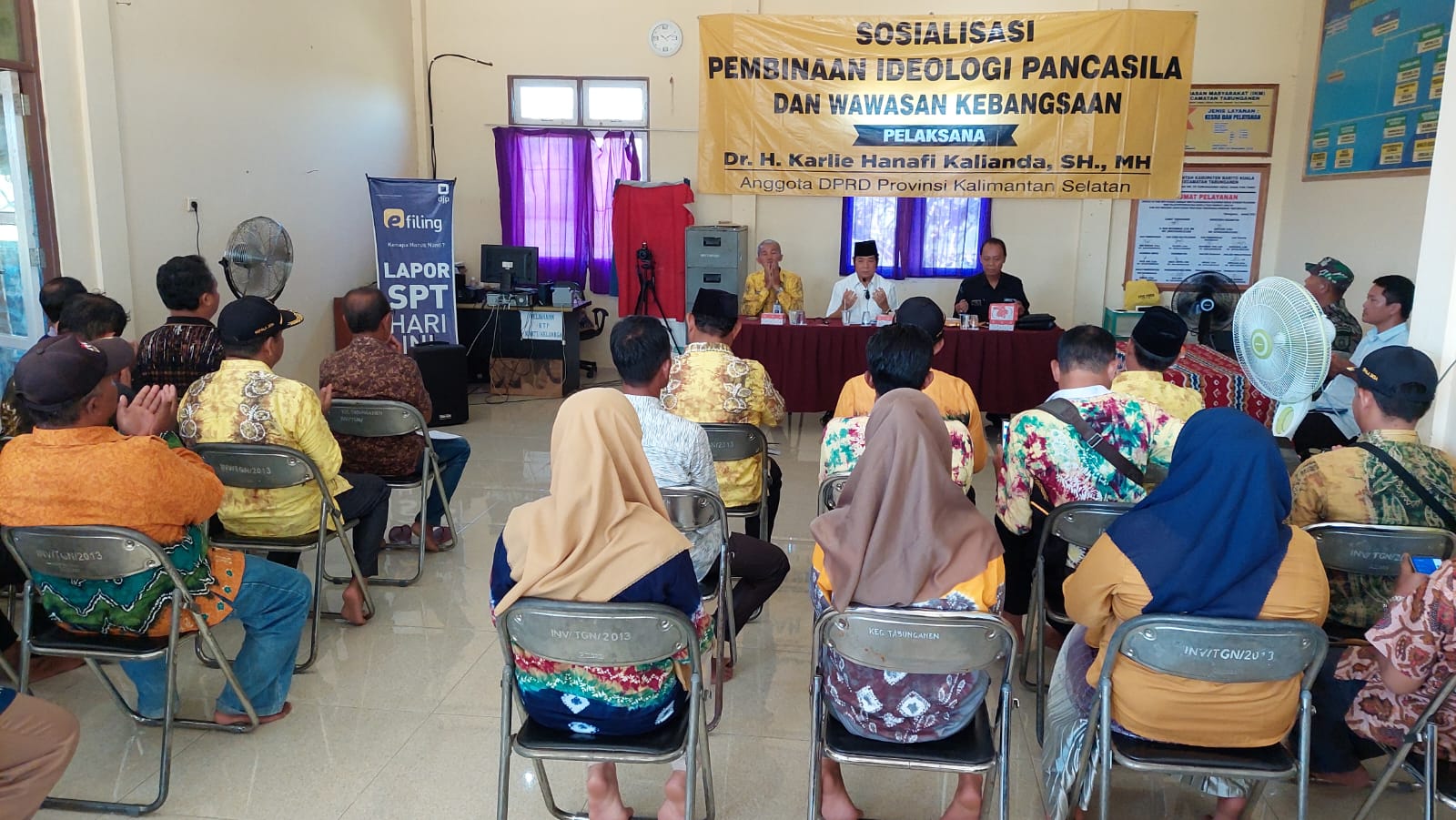 Kegiatan Soswasbang yang dilaksanakan anggota DPRD Provinsi Kalsel, Dr H Karlie Hanafi Kalianda, SH, MH di Kecamatan Tabunganen dimoderatori oleh M Fauzi serta dihadiri Camat Tabunganen, H Said Muhammad, SPd, MM serta Danramil setempat.
