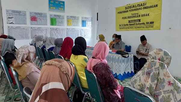 Kegiatan sosialisasi/penyebarluasan peraturan perundangan/peraturan daerah ini juga menghadirkan nara sumber Kepala UPTD PPA Dinas Pengendalian Penduduk, Keluarga Berencana, Pemberdayaan Perempuan dan Perlindungan Anak Kabupaten Barito Kuala Ir H Subiyarnowo.