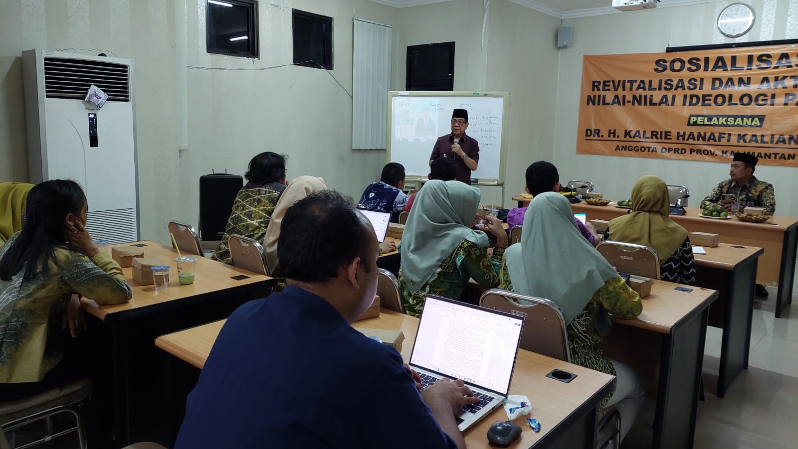 Sejarah lahirnya Pancasila menjadi materi dalam kegiatan Sosialisasi Revitalisasi dan Aktualisasi Nilai-nilai Ideologi Pancasila dengan tema “Pedoman Penghayatan dan Pengamalan Pancasila”, yang dilaksanakan Karlie Hanafi Kalianda.