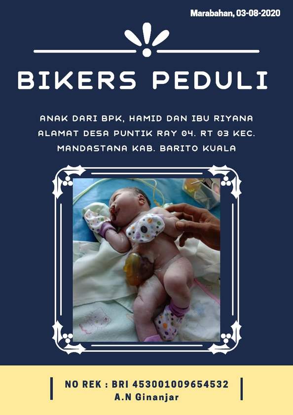 Bayi malang yang orangtuanya secara ekonomi tidak mampu tinggal di Jalan Ray 04, RT.03, Puntik Tengah, Kecamatan Mandastana, Kabupaten Barito Kuala (Batola), itu menderita empat penyakit sekaligus.