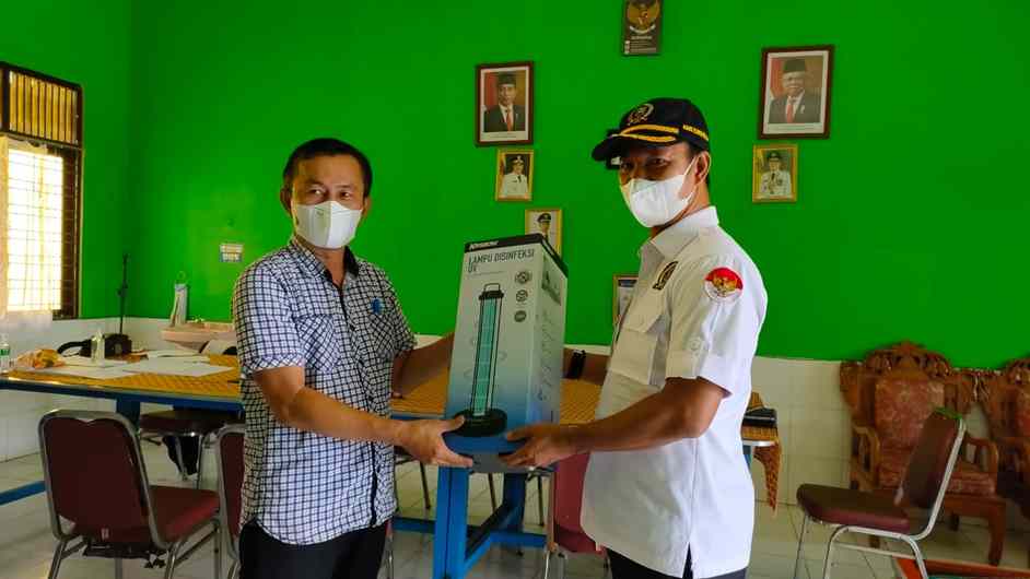 Bantuan lampu Ultraviolet (UV) Disinfektan itu salah satunya diserahkan ke Sekolah Dasar Negeri (SDN) Surgi Mufti 1 yang diterima oleh Kepala Sekolahnya, Nurkhozin, Sabtu (24/7/2021).