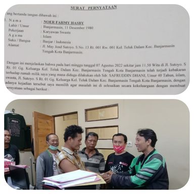 “Bahwa dalam hal ini pihak diduga pelaku bersedia Mengganti kerugian yang dialami oleh pihak korban atas terbakarnya surat surat penting dan barang perabotan rumah tangga,”ungkap Kanit Reskrim Polsek Banjarmasin Tengah ini.