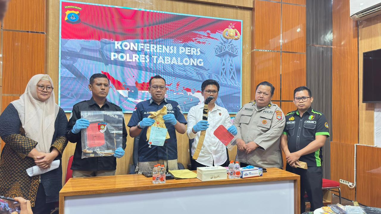 Jumpa pers dipimpin oleh PS Kasi Humas Polres Tabalong IPTU Heri Siswoyo, didampingi Kasat Reskrim AKP Danang Eko.