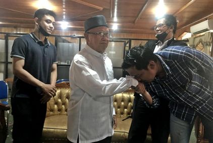 Pertemuan ditutup dengan ketiganya bersalaman dan mencium tangan H A Nawawi.