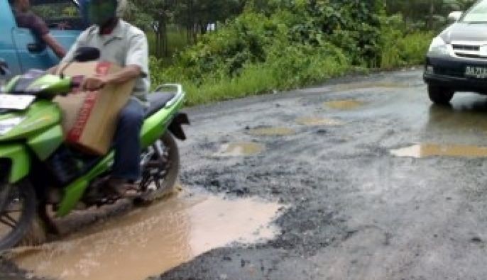 Sampit,BARITO- Kondisi Jalan Sudirman Sampit-Pangkalan Bun sekitar Km 3 sampai Km 9 kini sangat memprihatikan dan rawan kecelakaan, hal ini dibuktikan terdapat banyaknya lobang yang cukup dalam belum ditutupi oleh dinas terkait.