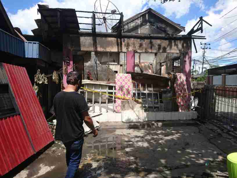 Bahkan api sudah melahap ke belakang atap rumah milik almarhum Habib Ahmad. Termasuk bagian atap rumah nyaris gosong mendekati atap seng dapur Kedai Bunda.