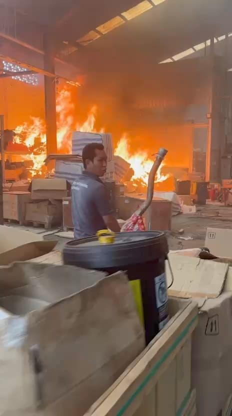 Kebakaran tersebut sempat menimbulkan kepulan asap hitam pekat yang terlihat dari kejauhan dan bahkan divideo oleh karyawan.