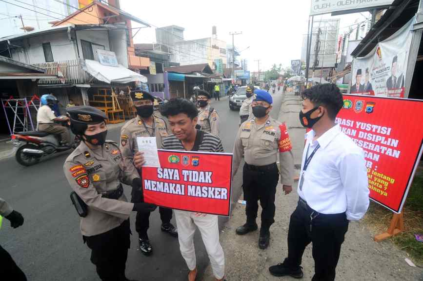 Berbeda di daerah yang kadang viral adanya terkadang perlawanan masyarakat dalam Operasi penegakan disiplin protokol kesehatan, di Kalsel nyaris tak ada seperti video viral yang menggambarkan perlawanan masyarakat. Pendekatan yang dilakukan petugas gabungan dari Pemerintah Daerah, Polri dan TNI, mencatatkan teguran lisan sebanyak 288.463, teguran tertulis 19.135, maupun denda administrasi 256 dengan jumlah Rp.27.125.000 dan lainnya 20.313.