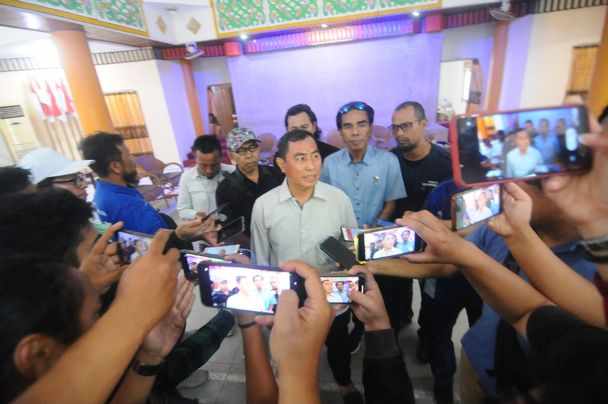 KETUA PWI – Ketua PWI Kalsel Zainal Helmie saat memberikan keterangan pers terkait kebobolan di gedung setempat, Rabu (15/6/2022) malam. (foto :iman /brt)