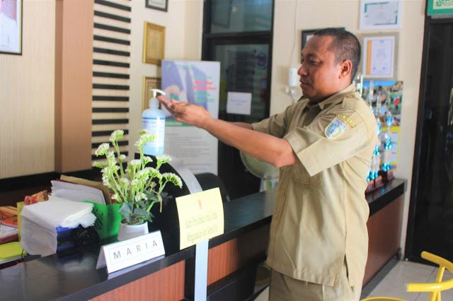 Dia meminta agar para karyawan untuk sering cuci tangan dan menggunakan sanitizer yang telah disediakan. Begitupula dengan masyarakat yang datang, harus diingatkan untuk menggunakan sanitizer.